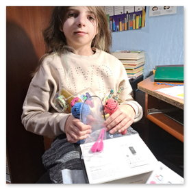 Victor programmiert ein wenig, zeichnet, lernt Englisch und Französisch in der Schule, Deutsch (selbst). Er mag Radfahren, Museen besuchen, Architektur, neue Orte und Städte zu erkundigen. Er mag Schwimmen und das warme Meer. Er orientiert sich problemlos in der neuen Städte und plant Routen mit öffentlichen Verkehrsmitteln. Die Schnecken machten ihm Spaß. „Wir sind dankbar für die Verbrauchsmaterialien, da diese schon immer teuer waren und jetzt nicht alles bei den Händlern in der Ukraine ankommt. Vielen Dank, dass Sie an uns gedacht und uns unterstützt haben.“