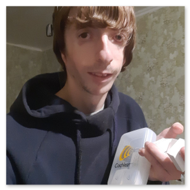 Andrey ist Erwachsener und arbeitet. Vor relativ kurzer Zeit ist er implantiert worden und trägt Baha. Er war schockiert über den Preis für ein Magnetpad. „Guten Abend, ich habe tolle Magnetpads erhalten, genau das, was ich brauchte, es sind 4 Stück in einer Box und 14 Stück Gesamtpolsterung, toll genug für mich. Nochmals vielen Dank!“