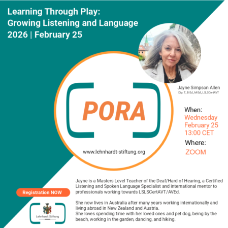 PORA! ist eine Initiative der Lehnhardt Stiftung, die 2009 ins Leben gerufen wurde. Ziel von PORA ist es, Wissen und Erfahrungen rund um das Thema Hörverlust und Rehabilitation, insbesondere durch Cochlea-Implantate (CI) und andere Hörhilfen, global zu teilen.